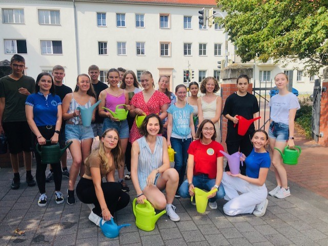 Ausgestattet mit Gießkannen in allen Farben und Formen zogen die Schüler*innen aus, um die wichtige Aktion #waessernfuermd initiiert vom Verein “Otto pflanzt!” zu unterstützen und die Bäume im Umfeld der Morgenstraße und Nachtweide zu bewässern. Die anhaltende Trockenheit macht leider auch den Bäumen in unseren Straßen sehr zu schaffen. Daher der Aufruf an die Magdeburger*innen, die öffentlichen Pumpen zu nutzen und tatkräftig bei der Bewässerung mit anzupacken.